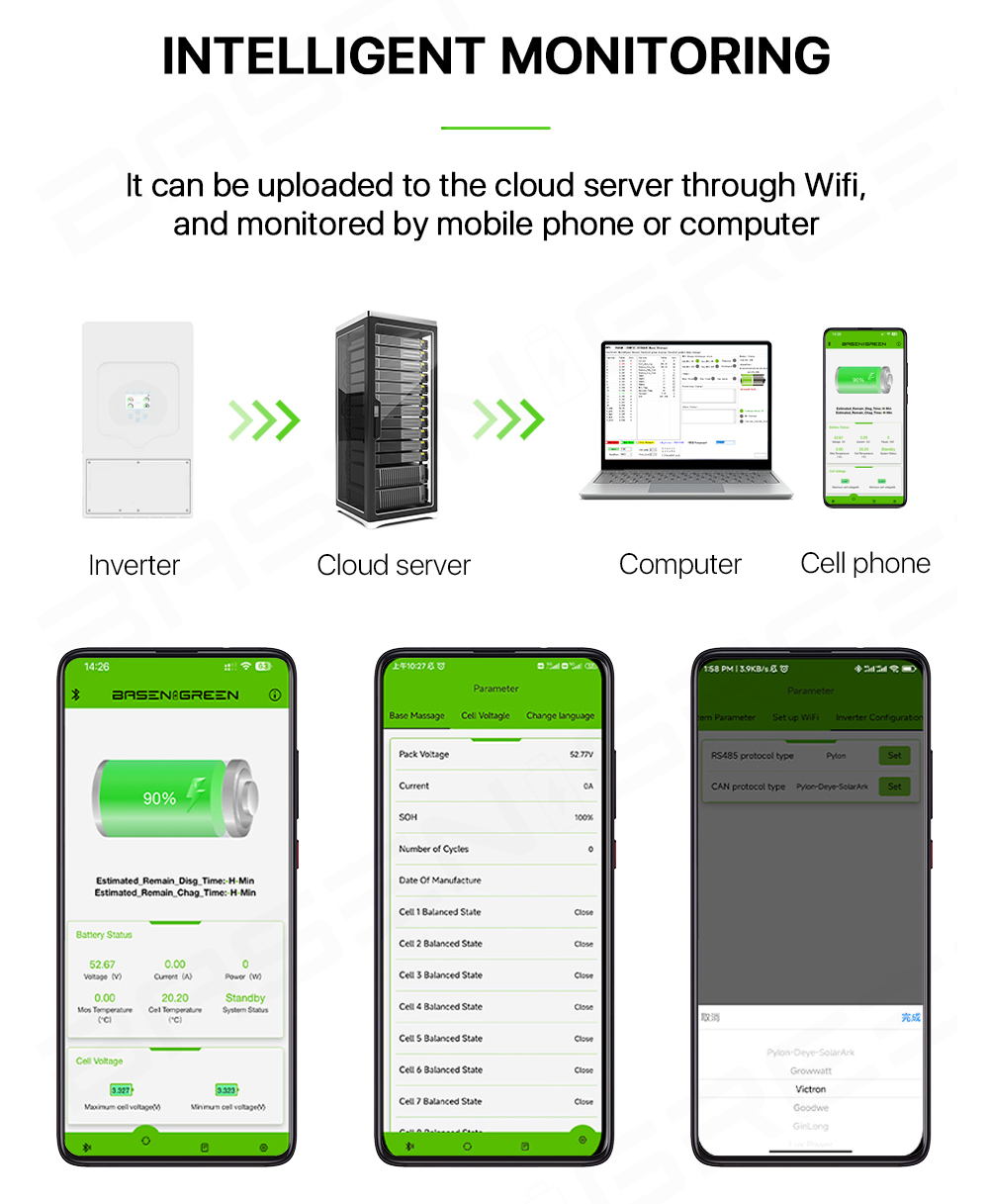 ●[Disponível a qualquer momento]: Com RS232/RS485/CAN, informações a qualquer momento via celular ou computador.